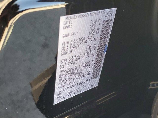 • Radio: NissanConnect -inc: 6 speakers (2 A-pillar, 2 front door, 2 rear door), 12.3" color touch-screen display, wireless Apple CarPlay, wireless Android Auto, 2 front and 2 rear USB type-C charge and data, SiriusXM w/360L, NissanConnect services powered by SiriusXM and 5G cellular connection